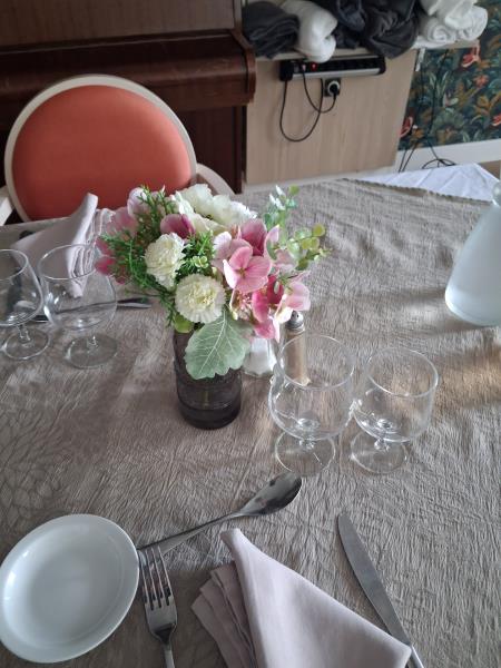 Les Cinq Sens > Actualités > Centre de table Centre de table Publiée le 17/11/2025 Voici les nouveaux centres de tables réalisés par notre fleuriste, les résidents apprécient cette touche fleurie sur leur table.